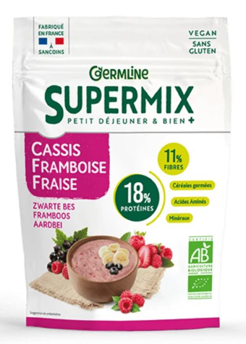 Descoperă Supermixul Germline, o simfonie de arome și texturi. Acest supermix vegan și fără gluten, bogat în proteine și fibre, aduce o explozie de arome fructate și o notă colorată micului dejun sau gustărilor tale. Fructele de pădure liofilizate se îmbină armonios cu cerealele germinate pentru un rezultat atât nutritiv, cât și delicios. Perfect pentru a crea un bol de mic dejun plin de vitamine sau pentru a-l presăra peste deserturi pentru un final aromat și nutritiv al mesei.