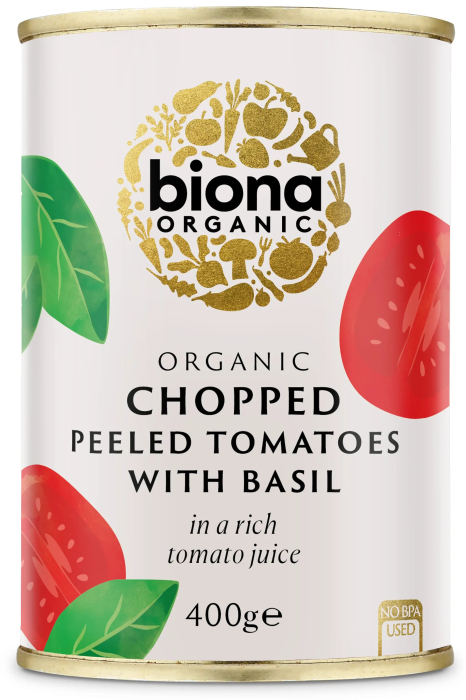 Biona Roșii decojite mărunțite cu busuioc la conservă bio 400g Biona