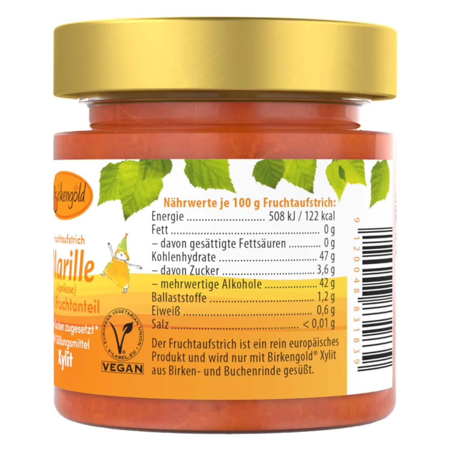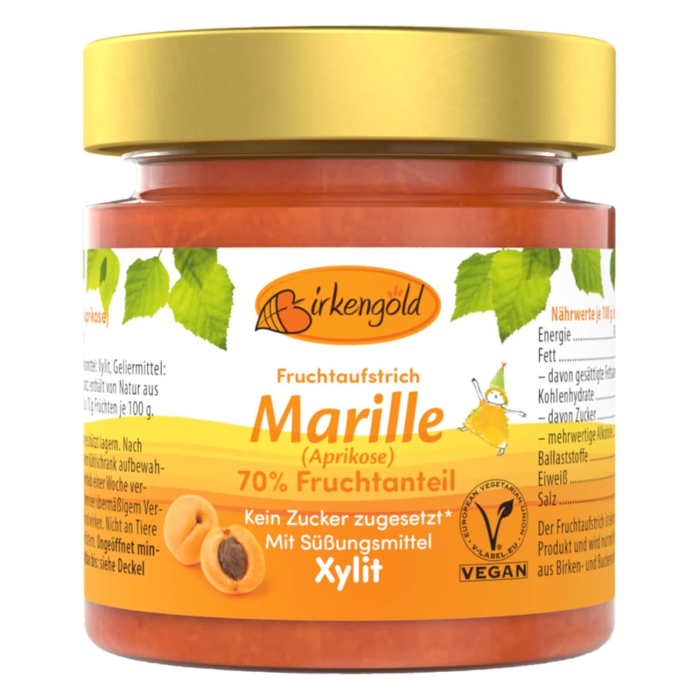 Gemul Birkengold cu fructe de caise are un conținut de 70% de fructe organice selectate.