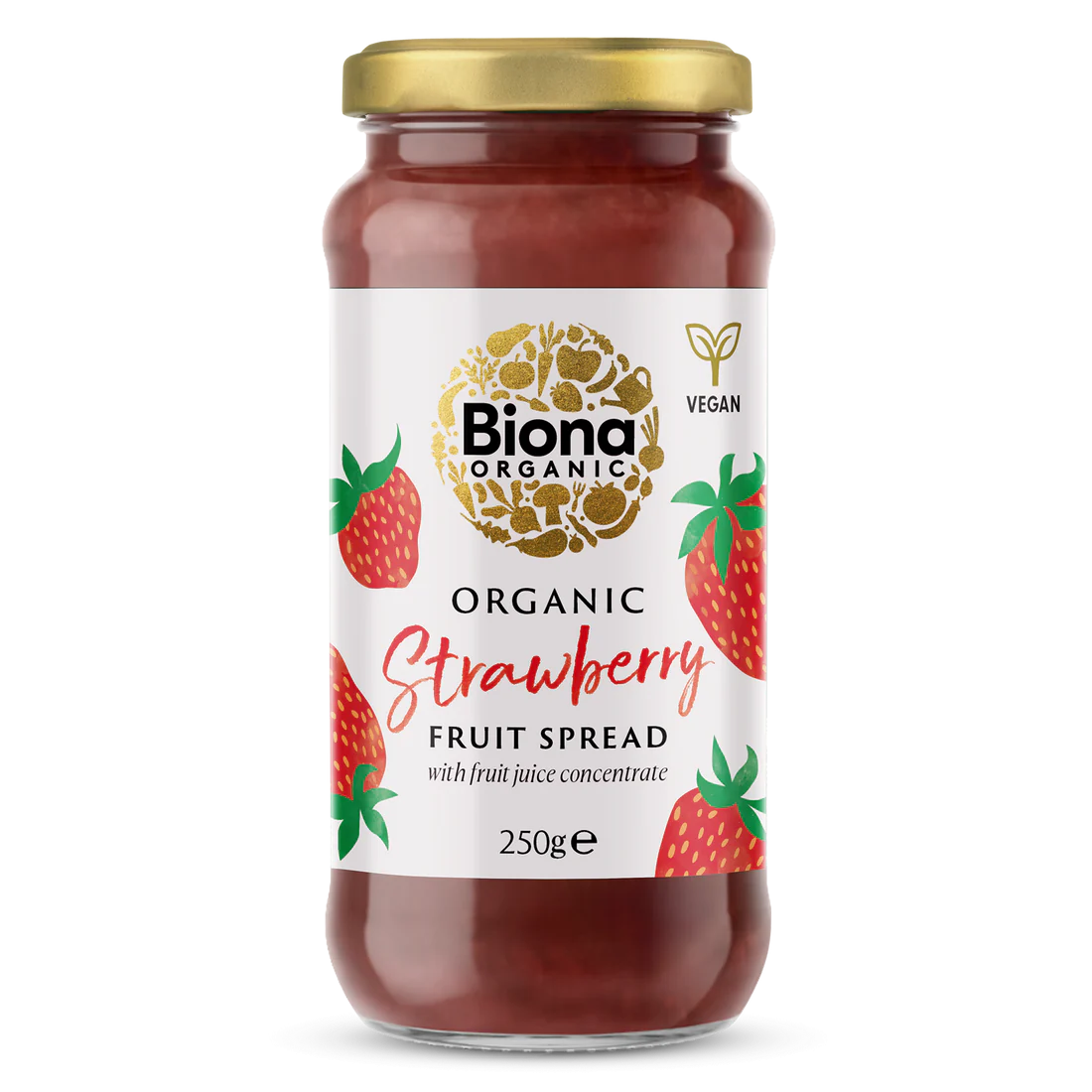 Gemul de căpșuni Biona este bio, vegan, fără zahăr rafinat, îndulcit cu suc de fructe.
