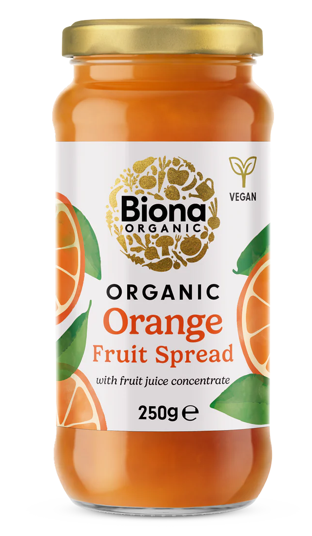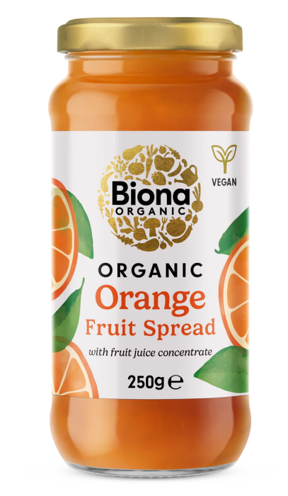 Gemul de portocale Biona este bio, vegan, fără zahăr rafinat, îndulcit cu suc de fructe.