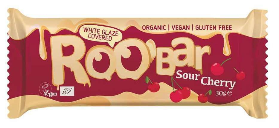 Roobar Baton cu vișine învelit în glazură albă bio 30g Roobar