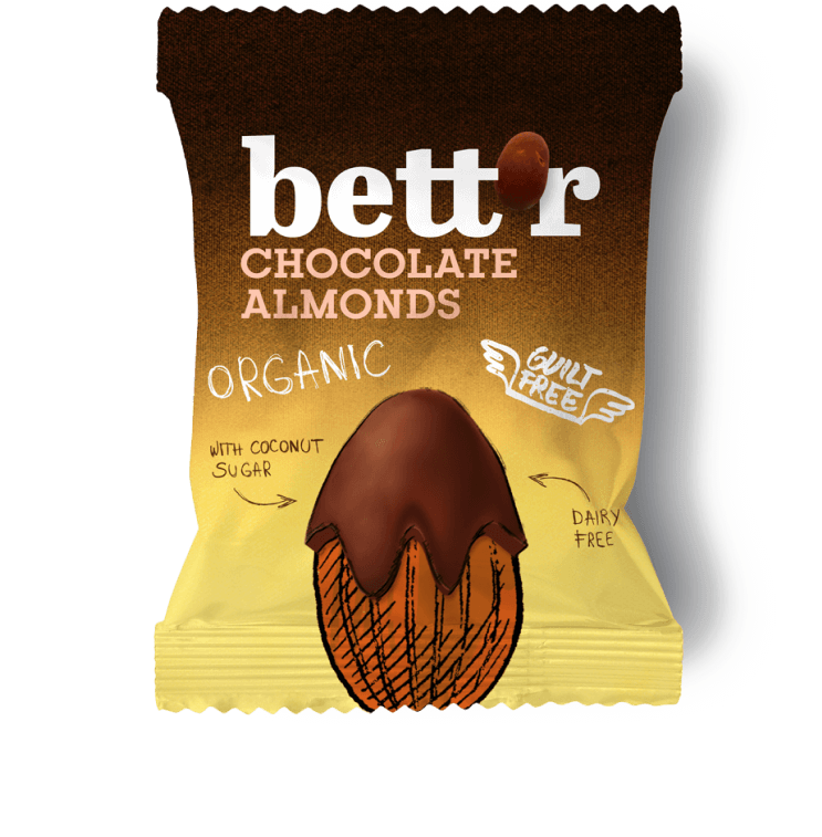 Migdale delicioase, învelite într-un strat delicios de ciocolată bio.