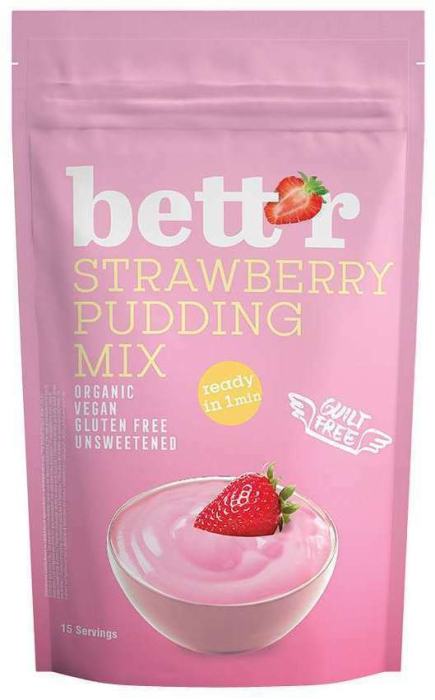 Rețeta nu conține gluten și arome artificiale, ci doar câteva ingrediente. Pudra de căpșuni este cea care dă gustul și aroma fructată. Aceasta face ca produsul să fie complet natural și perfect pentru toți iubitorii de deserturi. Amestecurile de budincă Bettr sunt neîndulcite, ceea ce-ți oferă posibilitatea de a adăuga îndulcitori la alegere. Îți recomandăm să folosești sirop de agave, zahăr de cocos, eritritol, zahăr muscovado, pudră de curmale sau altele.