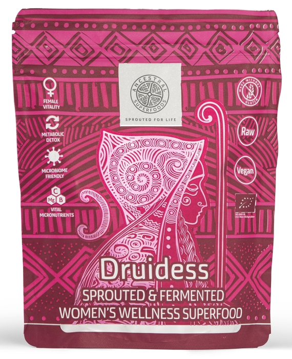 DRUIDESS este inspirat de femeile din timpurile străvechi care aveau rol de lider spiritual. Abilitățile lor erau asociate cu puteri vindecătoare, cunoștințe de astronomie, cunoștințe despre leacuri pe bază de plante și ierburi. Ideea produselor Ancestral Superfoods este să ne inspirăm din timpurile vechi, să luăm calitățile liderilor de atunci și să le transpunem omului modern.